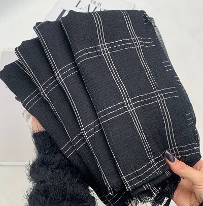 شال پلیسه زارا وارداتی ۳ خط منگوله چوبی
