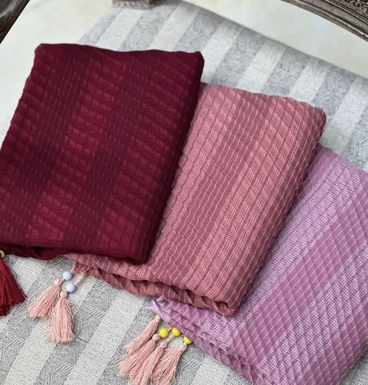 شال پلیسه نخی حصیری منگوله دار