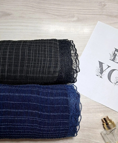 شال برشکا نخی طرح چهارخونه لب دانتل