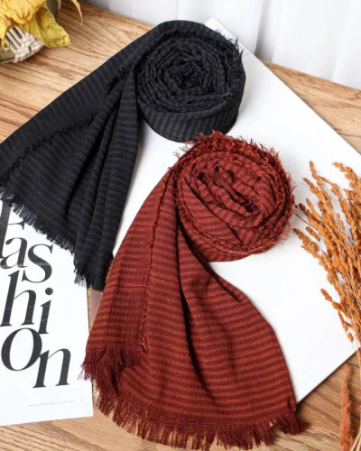 شال پلیسه زارا وارداتی ۳خط منگوله چوبی